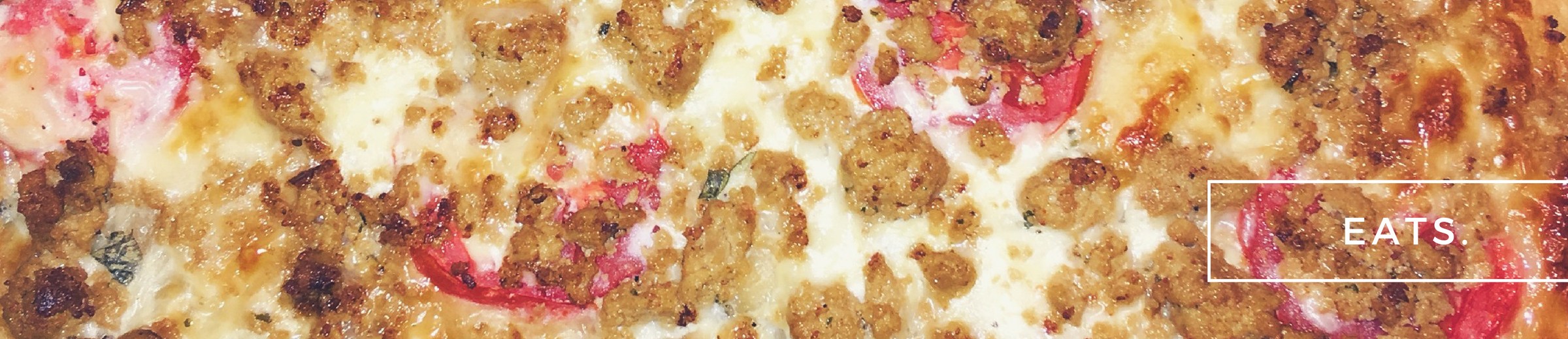Cut the tomatoes into super thin slices and place them all over. Take the topping mix that’s in your bowl and using a small ice cream scoop, or in my case, a SPOON, dollop it onto the pizza and spread it evenly across its entirety. Sprinkle the turkey all over, and pop that sucker in the over for 15-20 mins or until golden brown. Cut and Serve.